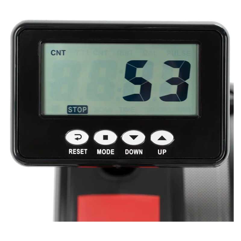 Показания дисплея : | время тренировки, количество гребков в минуту, количество гребков за тренировку, пройденная дистанция, пульс, расход калорий |