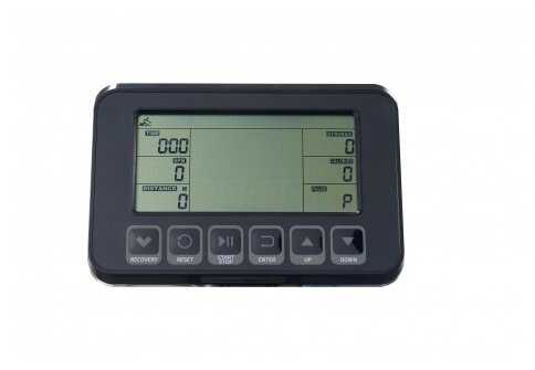Показания дисплея : | время тренировки, количество гребков в минуту, количество гребков за тренировку, пройденная дистанция, пульс, расход калорий, темп |