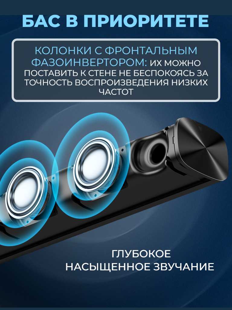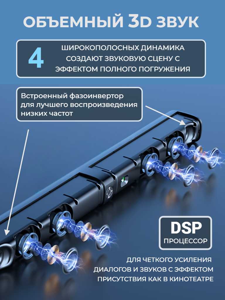 При распаковки был удивлен что мне пришел возвратный товар которым уже пользовались не было пленочек, дак ещё и с дефектом в виде трещины на пластике со стороны крепления. Трещина конечно при стыковке не видна и люфта никакого не даёт, так что я себе сказал, что если со звуком все будет отлично то оставлю. Оставил)) Внутри 4 динамика, но расположение от фото товара у продавца отличается, а в самой инструкции написано что всего 2 динамика по 30Вт, так что не переживайте, в ней 4 динамика и каждый по 20Вт. Я поначалу сам испугался и хотел уже вернуть. Сама сеточка на саундбаре тонюсенькая аж просвечивает. Звук лично мне нравится, хорошие басы, прям очень хорошие, даже на очень низкой громкости их ощущаешь. Использую ее на ПК для музыки и игр, самое то (подключение через оптоволокно) с Dolby Atmos работает. Сделал для нее свой крепеж, теперь она создана для моего рабочего места.