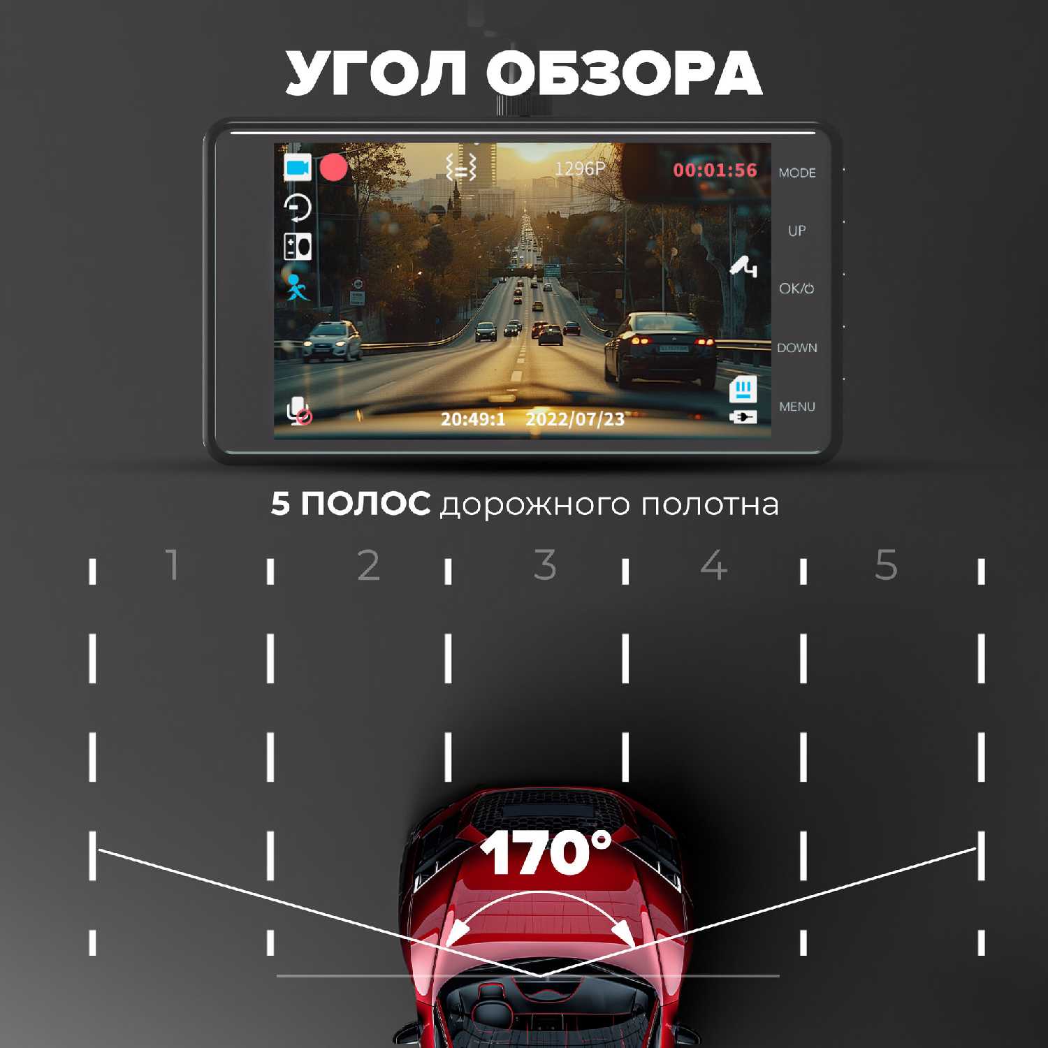 - Передняя и задняя камеры обеспечивают одновременный обзор в пяти полосах движения, что критично для фиксации обстановки в плотном городском трафике.