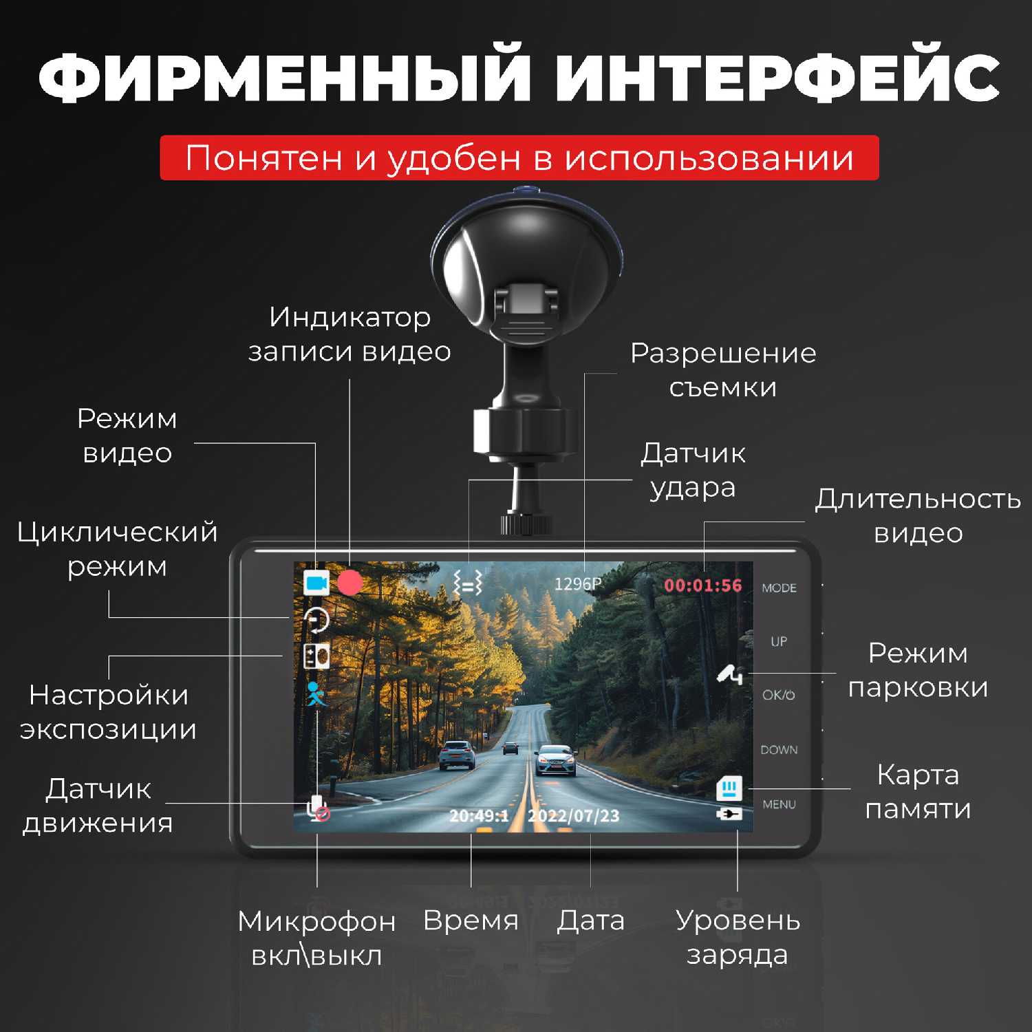 Несмотря на проблемы с переводом, сам интерфейс управления оценивается частью пользователей как удобный и понятный. Наличие большого экрана упрощает навигацию по меню и просмотр записей непосредственно в салоне автомобиля. Однако важно отметить, что экран не является сенсорным, что может показаться неудобным для тех, кто привык к touch-управлению. Общая логика меню, судя по отзывам, интуитивна, но требует изучения из-за некорректного перевода. -