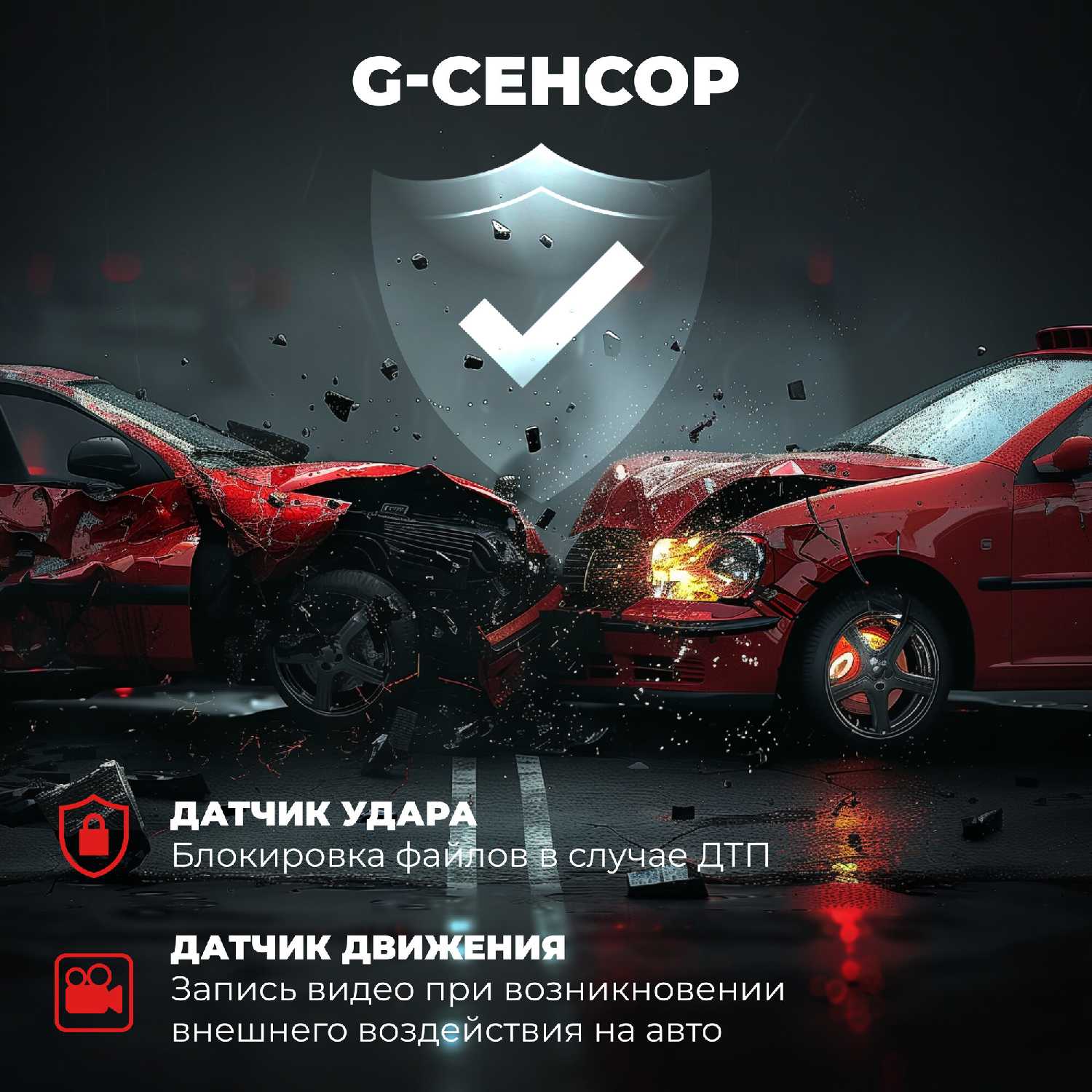 - Функция G-сенсора автоматически блокирует файлы, записанные при резких маневрах или ударах, защищая их от случайного удаления.