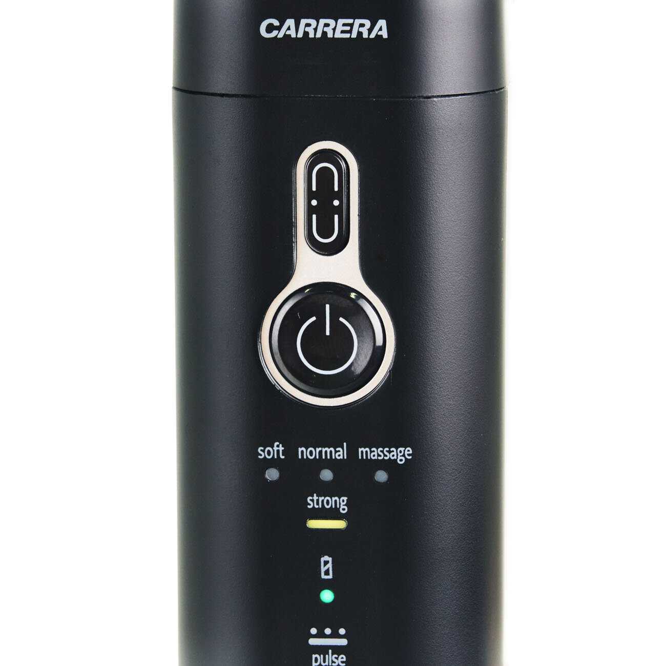 - Сильный напор воды даже на минимальном режиме обеспечивает тщательное удаление зубного налета и остатков пищи.