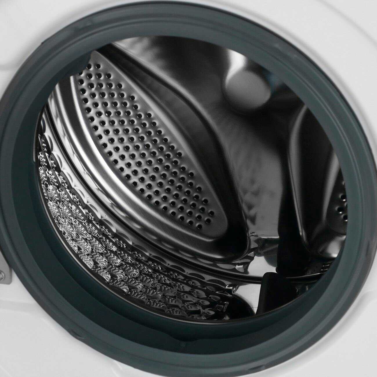 Уровень шума и вибрации: Инверторный мотор обеспечивает тихую работу — слышен только плеск воды в барабане даже ночью на максимальном отжиме, без прыжков по полу при правильной регулировке ножек по уровню. Многие пользователи хвалят отсутствие вибрации на 1400 об/мин по сравнению с предыдущими Indesit и LG. Отдельные отзывы отмечают редкие случаи скрежета металла о металл, лязга или стука барабана после 10–14 стирок, приводящих к ремонту, особенно при отжиме пуховиков. В тихой квартире шум на 800–1400 об/мин заметен, но приемлем для кухни или ванной.