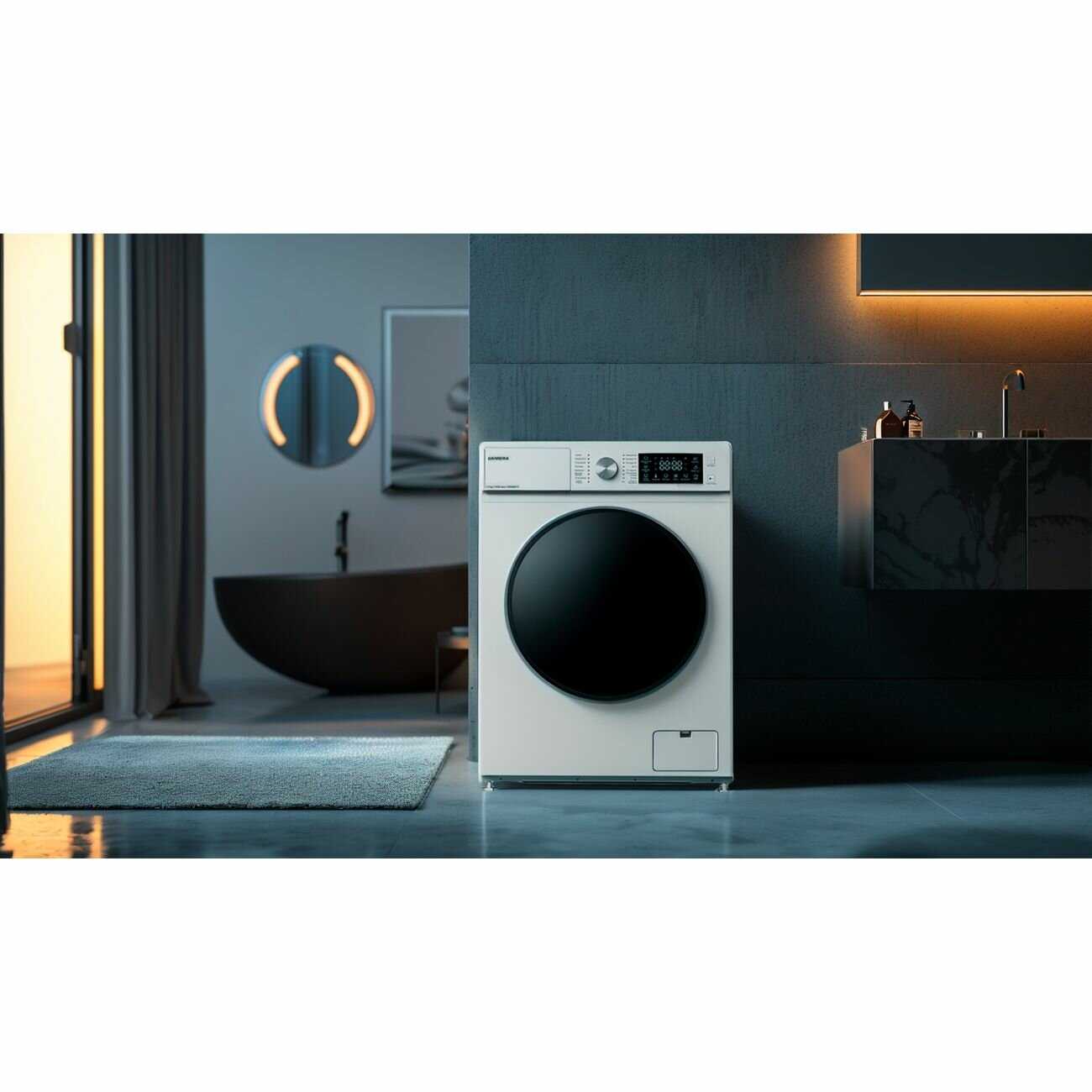 Несмотря на компактные габариты, подходит для маленьких помещений и вмещает пледы, одеяла. Пользователи, купившие для узкой ванной, довольны объёмом. Стирает большие вещи без проблем. Идеальна для небольших квартир по отзывам. -