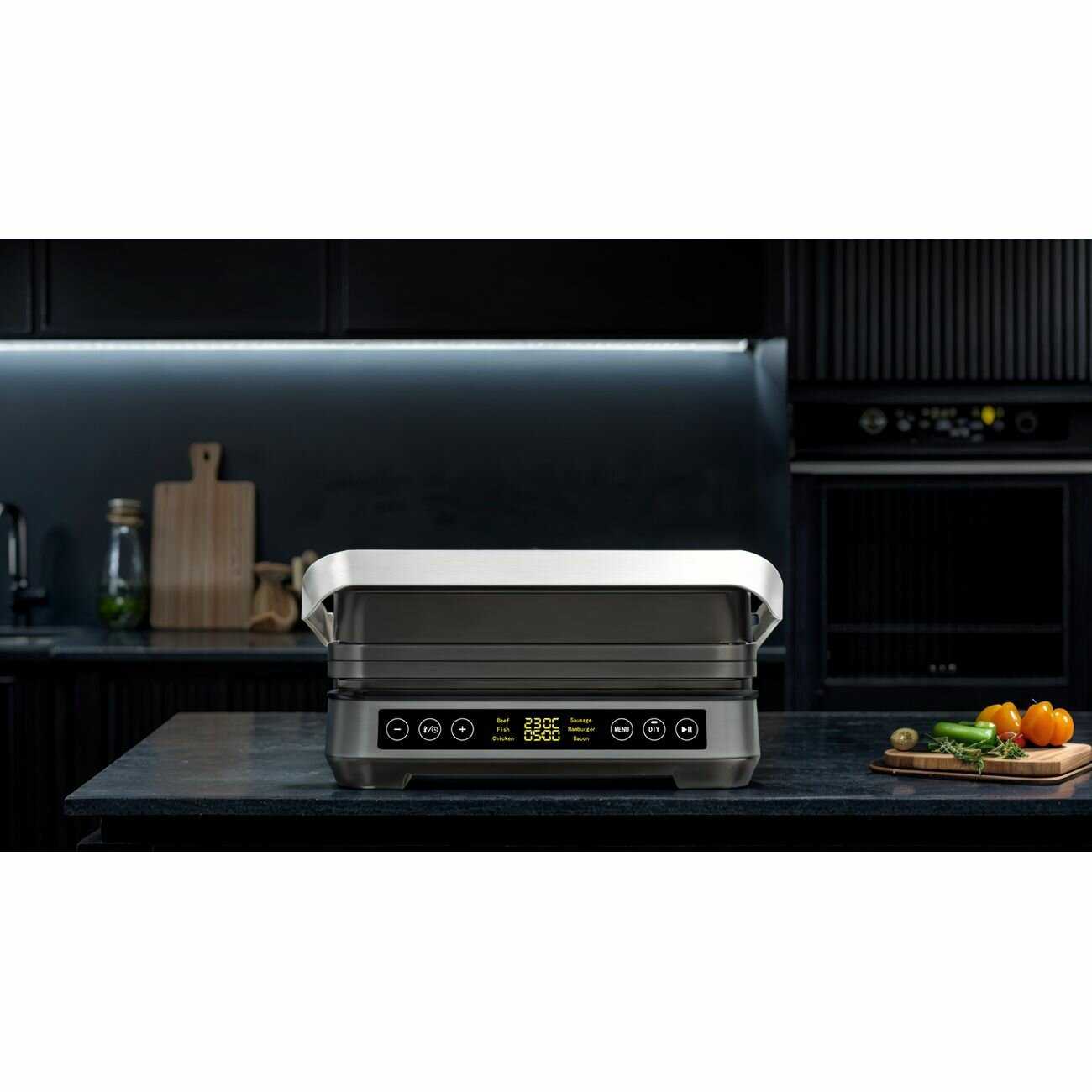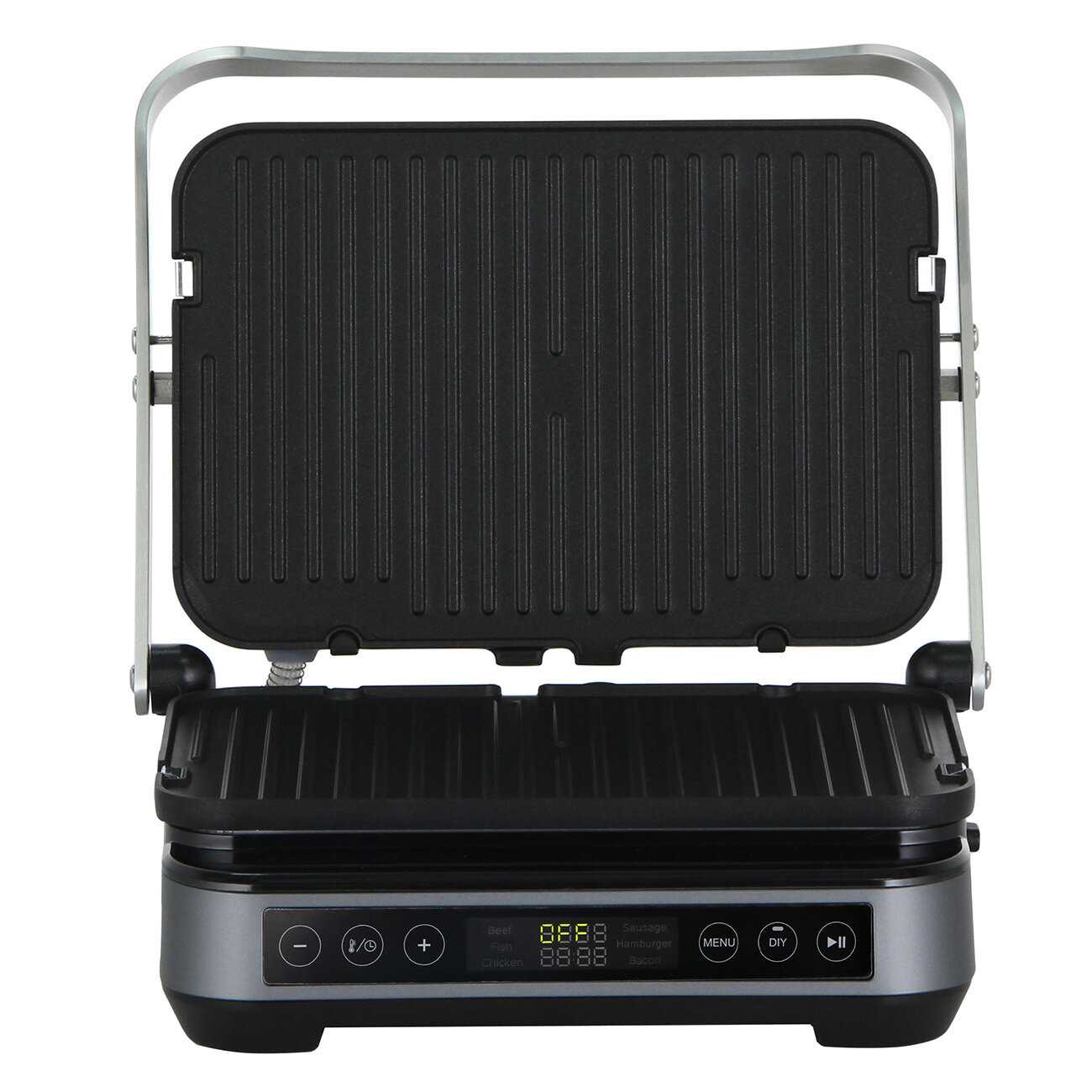 | Дополнительная информация : | Сенсорное управление, Таймер, Термометр, Термостат, Встроенный термометр, Звуковая индикация готовности, Световая индикация включения, Световая индикация достижения заданного нагрева, Индикация готовности к работе, Индикация заданной температуры, Индикация времени до конца программы, Длина шнура - 1 м, Установка времени приготовления, Ручки с защитой от жара, Комплектация: поддон для сбора жира решетка |