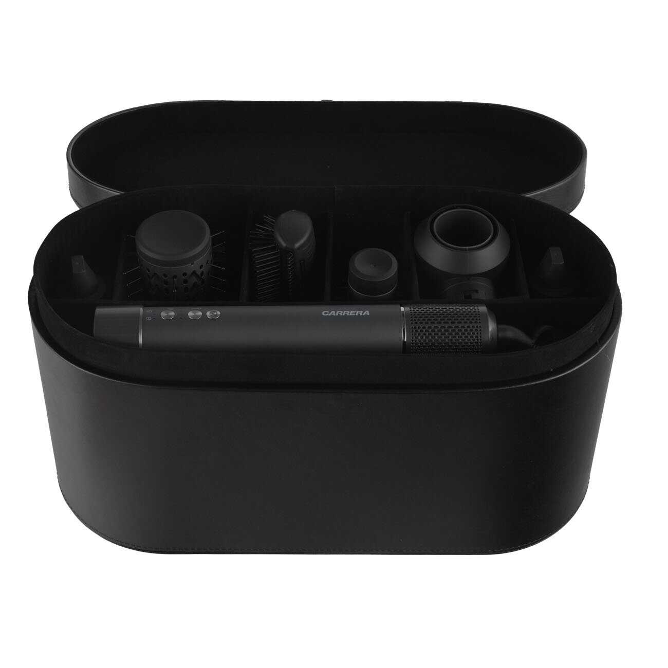 Мультистайлер Carrera позиционируется как универсальный инструмент для создания различных причёсок, объединяющий в одном устройстве функции фена, круглой и плоской щёток, а также плойки для завивки локонов. Первое впечатление от распаковки у большинства покупателей исключительно положительное: стильный дизайн в серых тонах, тактильно приятные матовые материалы и, главное, презентабельный кейс из кожзама с бархатным покрытием внутри. Этот кейс — не просто упаковка, а полноценный органайзер, где каждая из шести насадок имеет своё место, что решает проблему хранения и транспортировки. Устройство воспринимается как серьёзный гаджет для домашнего ухода, внешне напоминающий куда более дорогие аналоги, что изначально формирует высокие ожидания.Эффективность укладки: завивка, выпрямление и объём