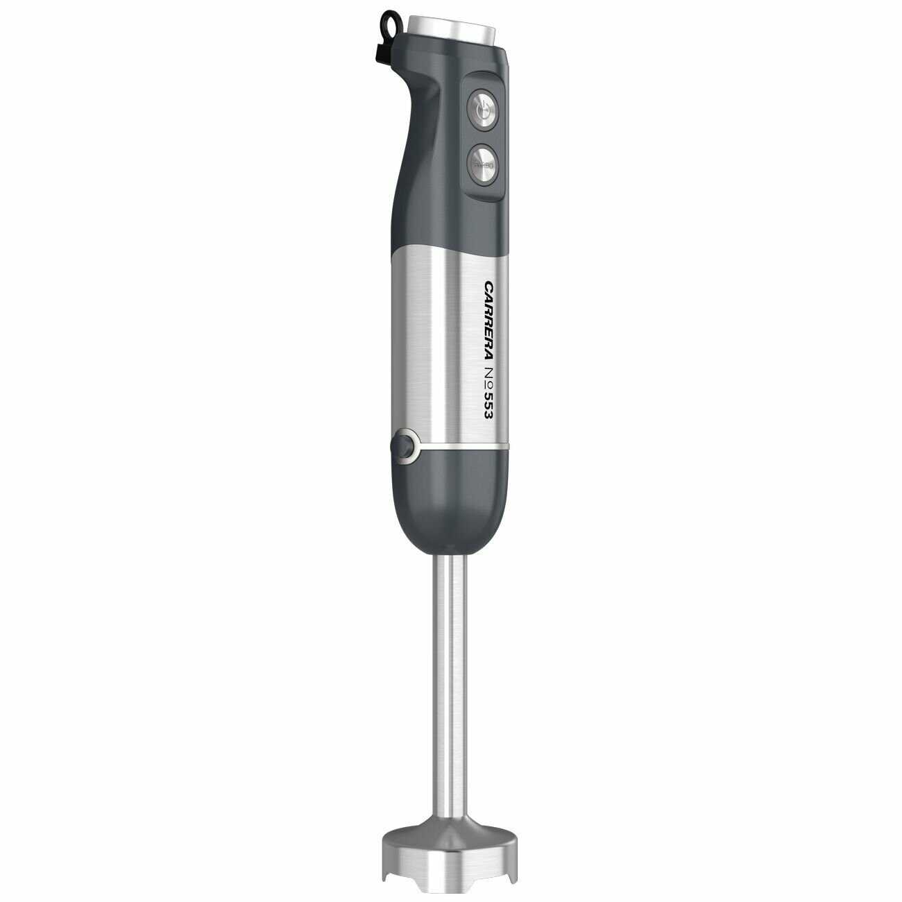 - + Блендер Carrera CRR553 3 в 1 с прочным стальным корпусом, острым 4-лепестковым ножом и полностью металлической ногой позволяет приготовить смузи и пюре из овощей и фруктов, взбить воздушные молочные коктейли, приготовить домашний майонез, детское питание и многое другое. Шесть скоростей дают возможность адаптировать блендер под любой продукт, при этом можно не бояться внезапных брызг: двигатель обеспечивает плавный пуск на любой из скоростей. Функция турборежима позволяет добиться нежной однородной консистенции блюда, создать воздушные кремы.