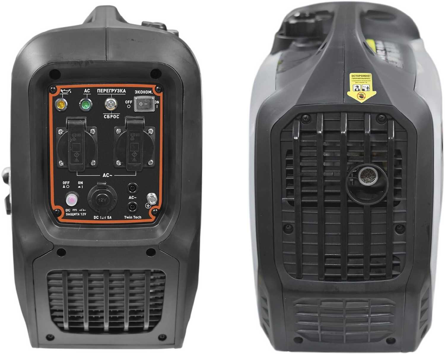 - Функция Eco-режима снижает обороты при нагрузке ≤500 Вт, уменьшая расход топлива до 0.7 л/ч.