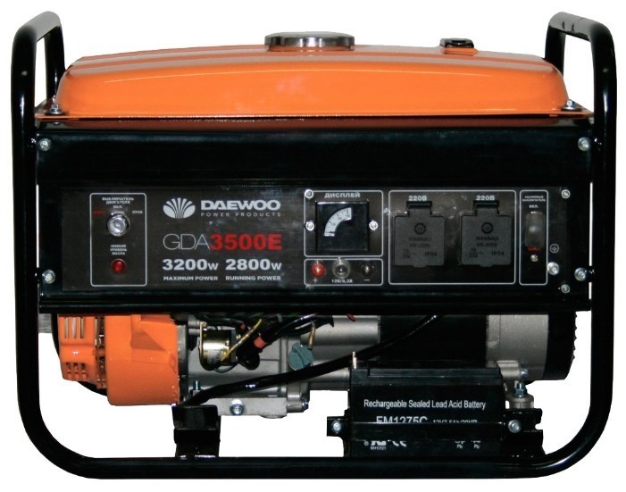 Достойный генератор для своей цены. Дизайн. 12 вольт. Вольтметр. Всё продумано. - - Алюминиевая обмотка. Неудобная горловина залива масла. Не очень удобное расположение рукоятки стартера. Отсутствие колёс.