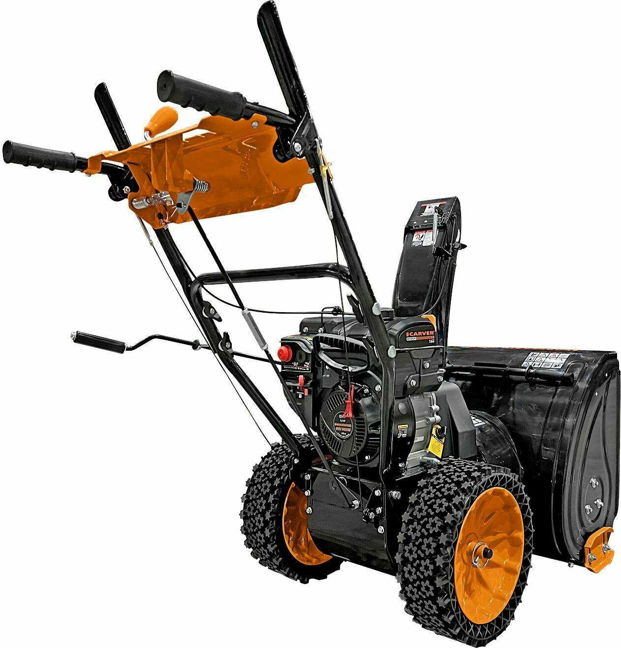 Всех категорически приветствую. К выбору снегоуборщика подходил ответственно, читал много отзывов, смотрел обзоры на ютубе. Смотрел хютер и патриот, но есть много негативных отзывов. Вообщем наткнулся на карвер, почитал отзывы, посмотрел обзоры на ютубе, все хорошо. Заказал со склада ДНС, пришло быстро, упаковка вся целая, комплектующие, инструкция все на месте. Собрал за час, масло в картере не было, заливается 4-х тактное, бензин чистый 92, завелся с пол оборота. Техникой доволен, очень выручает, проживаю на Севере Томской области, берет даже снег с коркой после дождя, выше себя тоже снег берет без проблем, колеса без камер, 4 скорости вперед и 2 назад, задними в принцип не пользуюсь, так как они медленные, а так на 3 скорости работает, колеса временами буксуют, все зависит от снега и рельефа, но это мелочи, подтолкнул его и все. Из минусов как и пишут все громкий выхлоп, может конечно на других так же, сравнивать не с чем, если только с мотоблоком хютер, шум +- такой же. Масло сменил после около 6 чисток, слилось черное и с пудрой, по инструкции после первых 5 часов работы замена, так как притирка деталей.