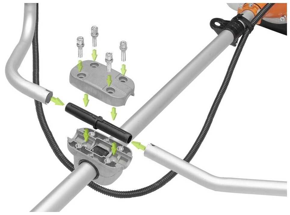 Ручки слабые, из тонкого пластика, люфтят и прокручиваются после ударов, особенно правая. Пользователи фиксируют их изолентой, резиной или бумагой. При работе с высокой травой ручки играют, но служат при аккуратности. Не внушают доверия, но решаемо подмоткой. -