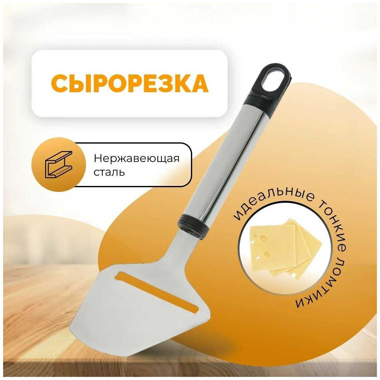 - + Удобнее чем сырорезки со струной
