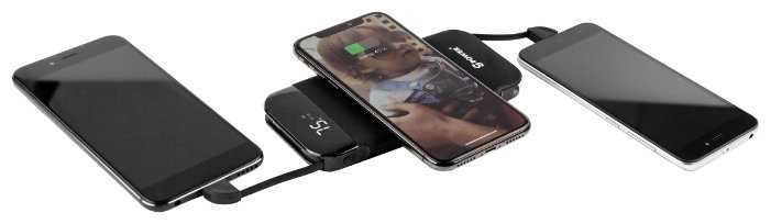 - + большая емкость (20 000 мАч), два разъема (iPhone и Android), функция быстрой зарядки, удобен в дороге.