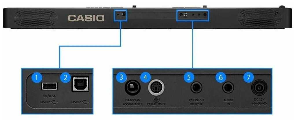 Разъемы и интерфейсы : | USB Type B, вход MIDI, выход MIDI, выход на наушники |