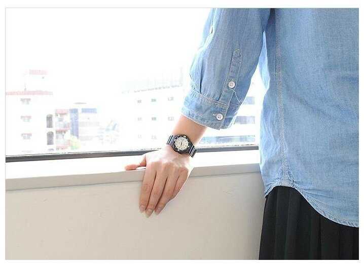 - + маленькие для мужчин, для девушек как-раз по руке. циферблат и стрелочки светятся в темноте и плохо освященном месте. Ремешок резиновый, меньше подвержен износу.