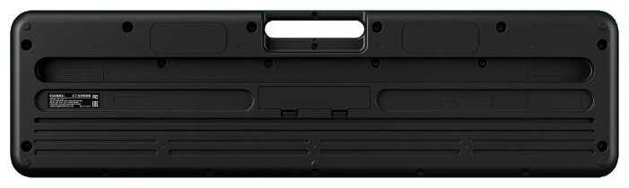 - Корпус из матового пластика предотвращает скольжение, а компактные габариты (ширина менее 1 метра) позволяют размещать синтезатор даже в ограниченном пространстве.
