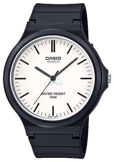 Часы все, что мне нужно, не больше и не меньше. Они надежно и точно показывает время и не было. Очень яркие белые стрелки на черном циферблате хорошо видны. В обработке есть, как Casio привыкли, ничего страшного. Через силиконовый ремешок и небольшой вес часов можно комфортно носить. Простой дизайн подходит для любого запястья. В целом, по низкой цене. замечательный часы рекомендуют для повседневной жизни.