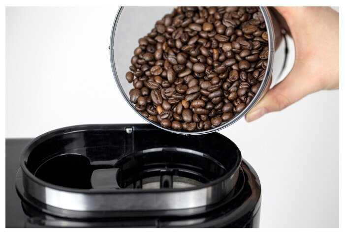 - Работает как на молотом, так и на зерновом кофе