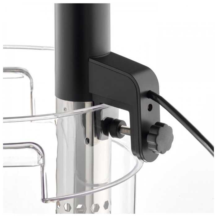 Крепление к емкости - струбцина. Не регулируется по высоте. Зафиксирована на корпусе.