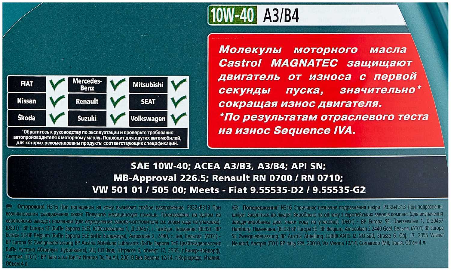 Характеристи Castrol Magnatec 10W-40 А3/В4
