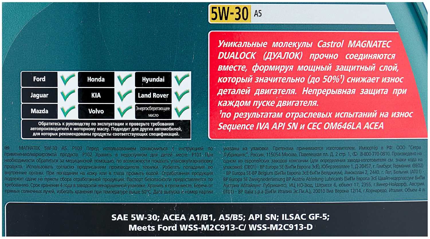 - - На этикетке написано Castrol Magnatec stop-start 5w30 A5.