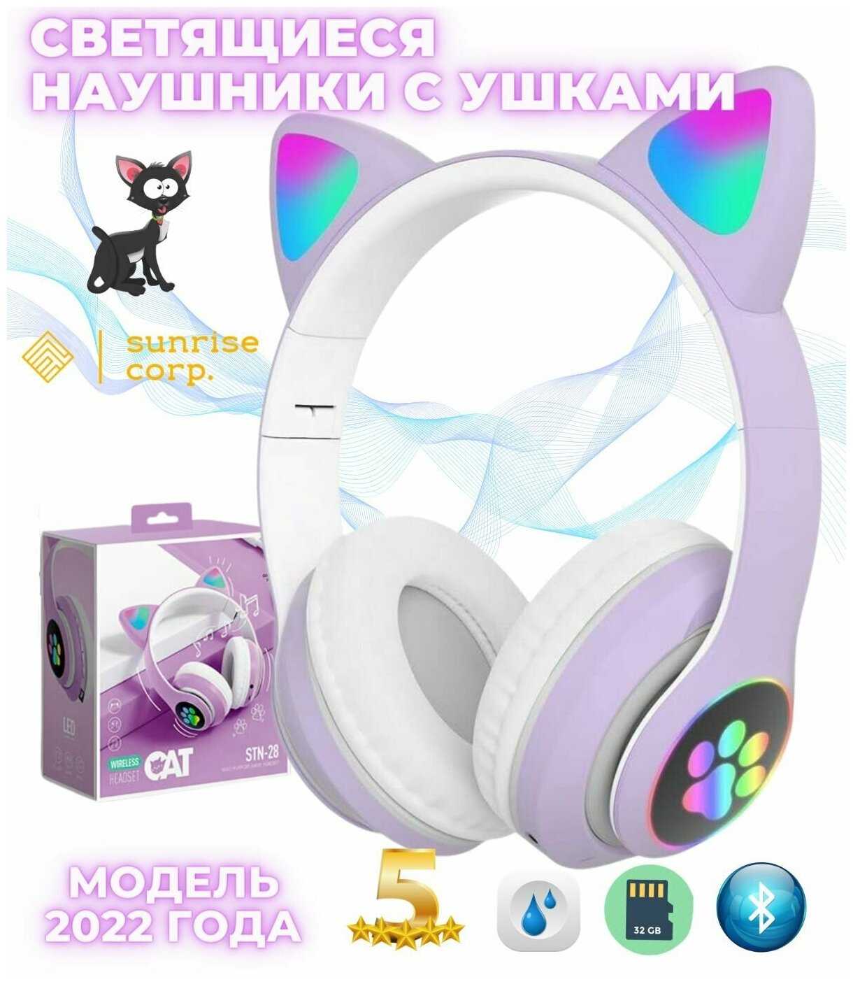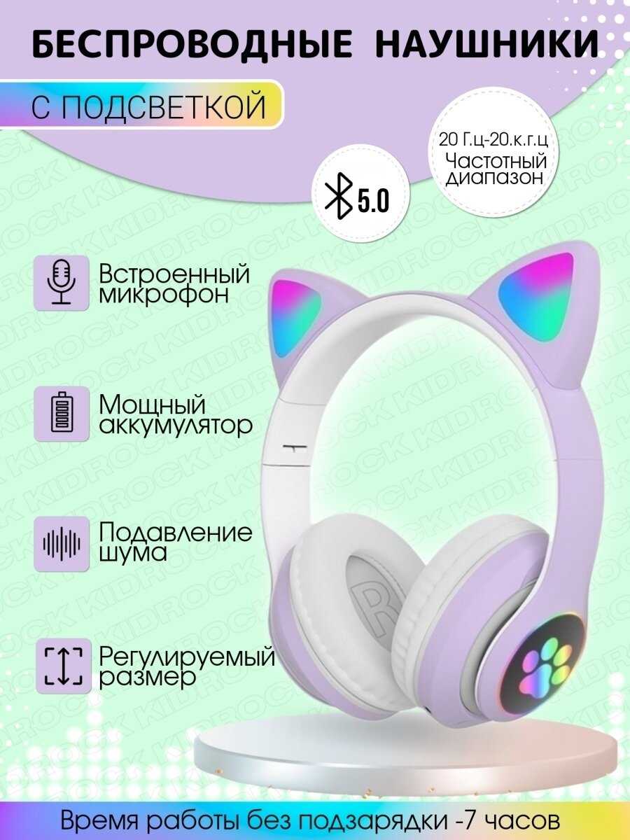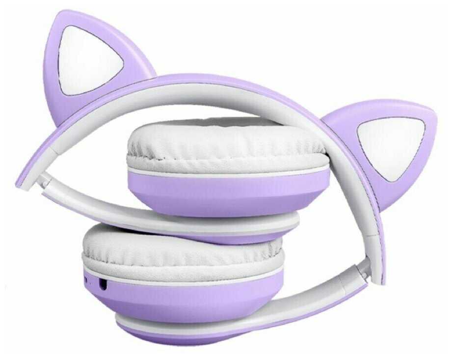 Беспроводные стерео наушники хороший подарок для девочки, мягкие детские наушники оснащены очень мягкими накладками на уши, поэтому не причиняют никакого дискомфорта. LED-подсветка в "Кошачьих ушах" и ободе наушников. Наушники беспроводные с ушками возможно соединить с любым гаджетом через Bluetooth.