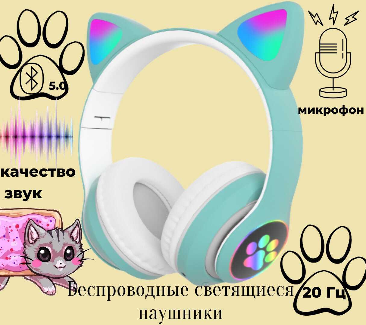 Особенности : | RGB подсветка, детские, кнопка ответа, мягкие амбушюры, подавление эха, складная конструкция |