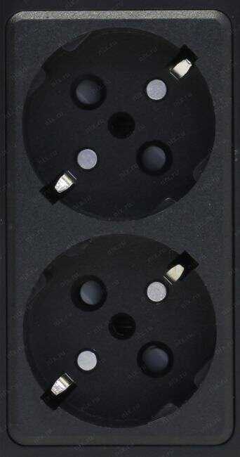 - - Время работы от батареи при 20% нагрузке менее 5 минут, сзади три розетки с13, для того чтобы подключить ПК и мониторы нужно переделать кабели питания