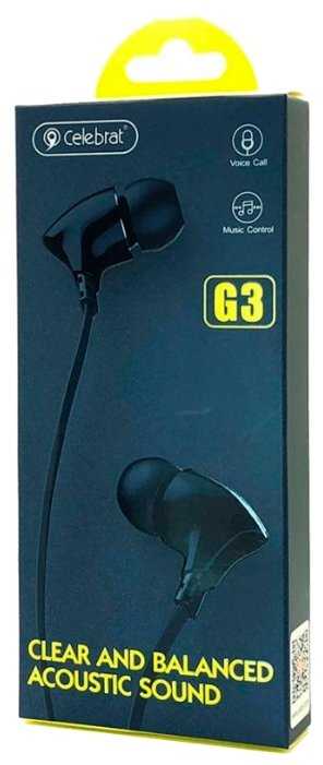 Celebrat G3 — типичные бюджетные наушники, которые подойдут непритязательным пользователям. Их главное преимущество — приемлемое качество звука за минимальные деньги. Динамики с акцентом на низкие частоты справляются с большинством музыкальных жанров, кроме классики и джаза, где важна детализация. Однако белые модели уступают чёрным по чистоте воспроизведения: пользователи отмечают «грязные» высокие частоты и неравномерную АЧХ.