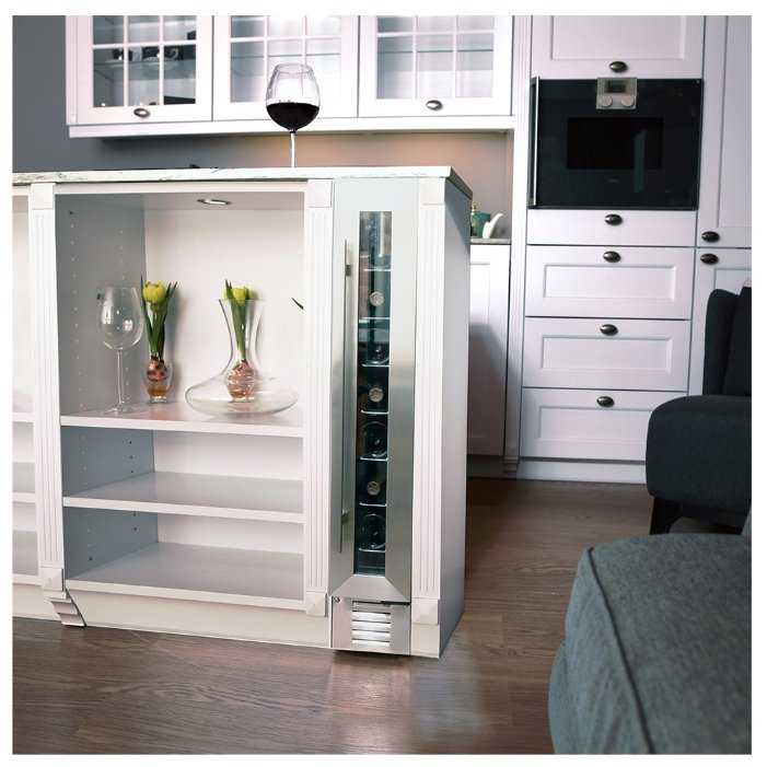 - + хороший узкий шкаф для вина. выбор в этой категории маленький а за такую цену вообще ничего кроме него нет.
