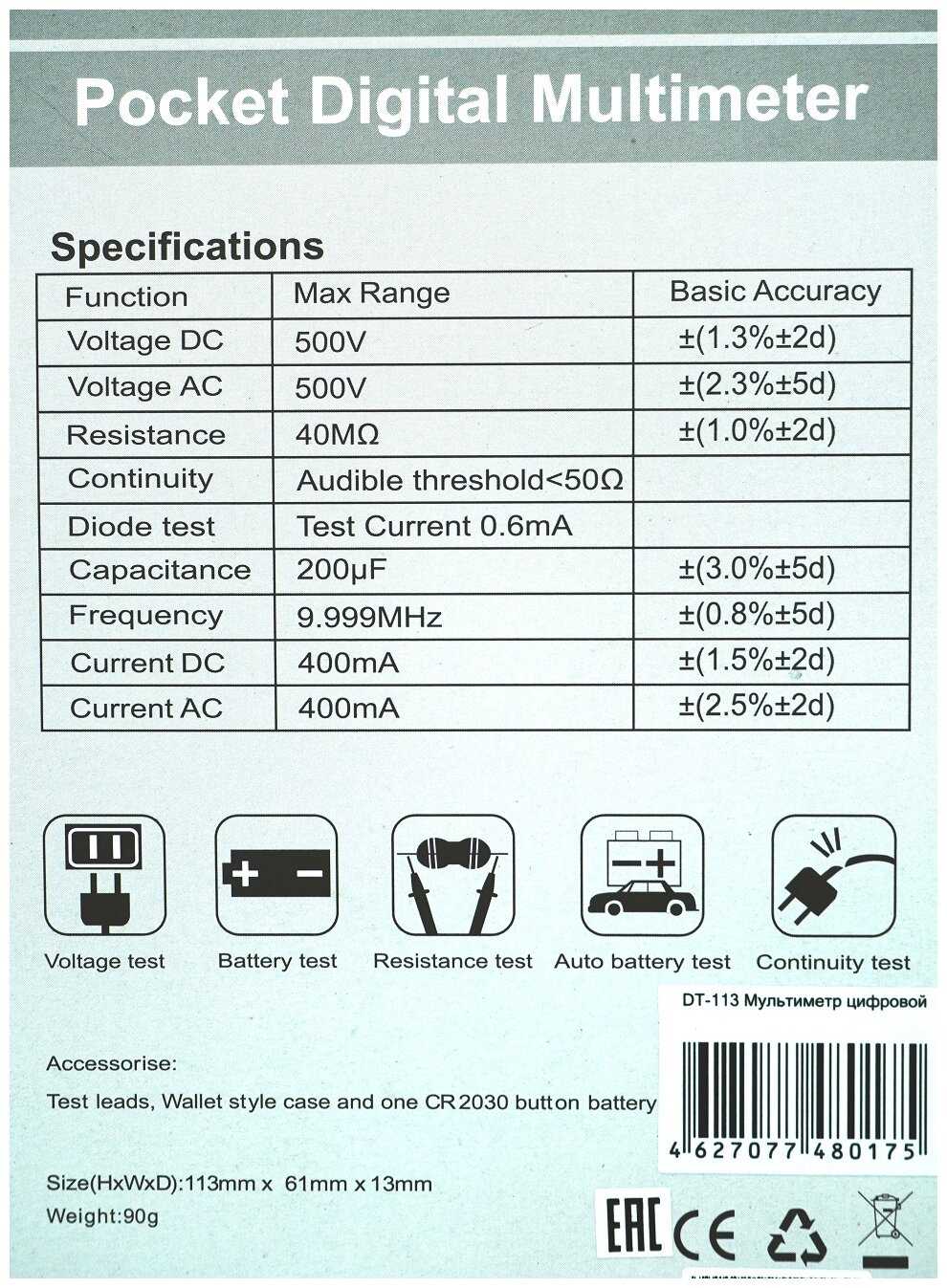 - + Привлекательная цена за мультиметр с таким широким функционалом (даже емкость можно измерять). Очень компактный.