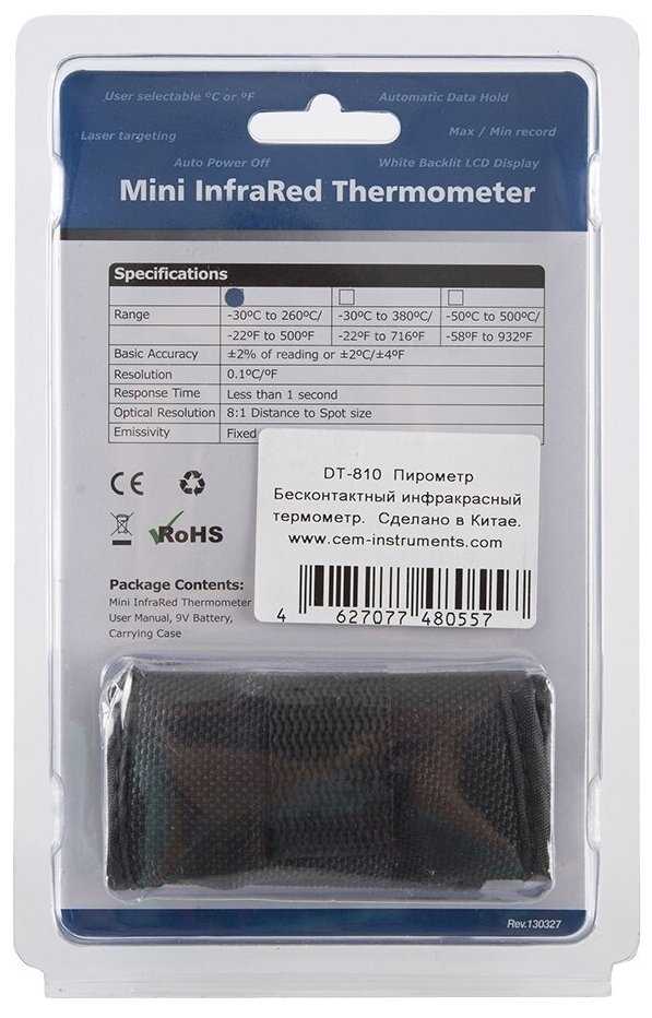 Пользуюсь несколько месяцев пирометром DT-810. Работает без перебоев, удобно лежит в руке. Есть лазерный указатель, который легко наводить на любую поверхность. Он отдельно включается. По техническим параметрам считаю полностью...