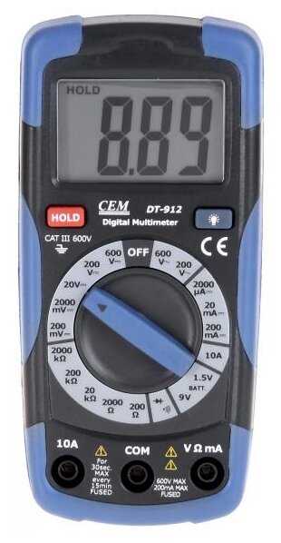 Мультиметер CEM DT-912 отличная фирма зарекомендовала себя на рынке с хорошей стороны. Очень качественно сделан и красиво, большой дисплей с подсветкой. Крона в комплекте, хорошие щупы. Покупкой очень доволен.