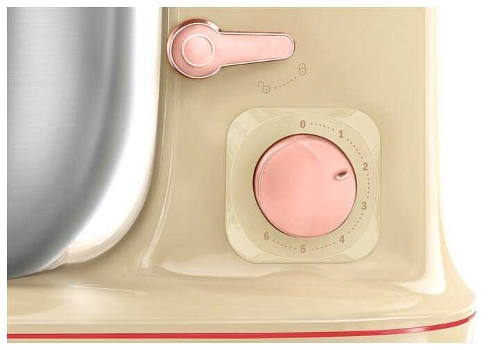 - Мощность миксера (до 1300 Вт) позволяет легко замешивать плотное тесто, включая дрожжевое и для пельменей, а также взбивать белки и сливки до устойчивой пены.