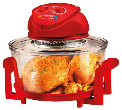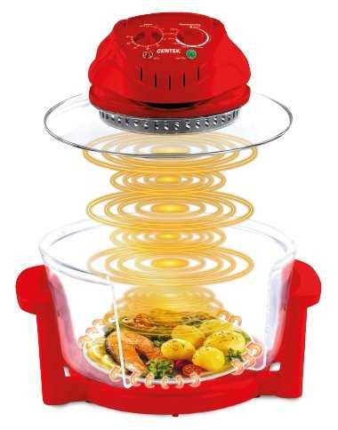 Диета жены меня заставила подумать о покупке аэрогриля, я долго выбирал, читал отзывы, и наконец-то остановился на CENTEK CT1456 RED. Отзывов было положительных много, да и объём сыграл главную роль, и без лишних наворотов. Крышка и чаща из закалённого стекла, и не впитывают посторонних запахов, что здорово. Да и вид красивый, особенно красный, похож на робота из мультиков. Но эта лирика, в общем, я доволен своей покупкой, готовил уже курицу, колбаски гриль, вкус изумительный, получается сочный, равномерно поджаренный, лишняя жидкость и жир, накаченный производителем, стекает вниз и остаётся только сок мяса. В духовке я уже не хочу готовить, там готовлю только пиццу и всё. Конечно, стекло требует особого ухода, бережного отношения, во-первых: сильно нагревается, во-вторых: нельзя прикасаться чем-нибудь холодным. Надо дать остыть и потом мыть. Главное, когда готовится блюдо, всё видно, весь процесс готовки, ничего не пригорает, не подгорает, так как готовка происходить с помощью горячего воздуха, нагоняемый вентилятором. Если много наготовили, на другой день можно разогреть в этом же аэрогриле. Вот пожалуй и всё, если кому-то мой скромный комментарий пригодится, я буду рад.