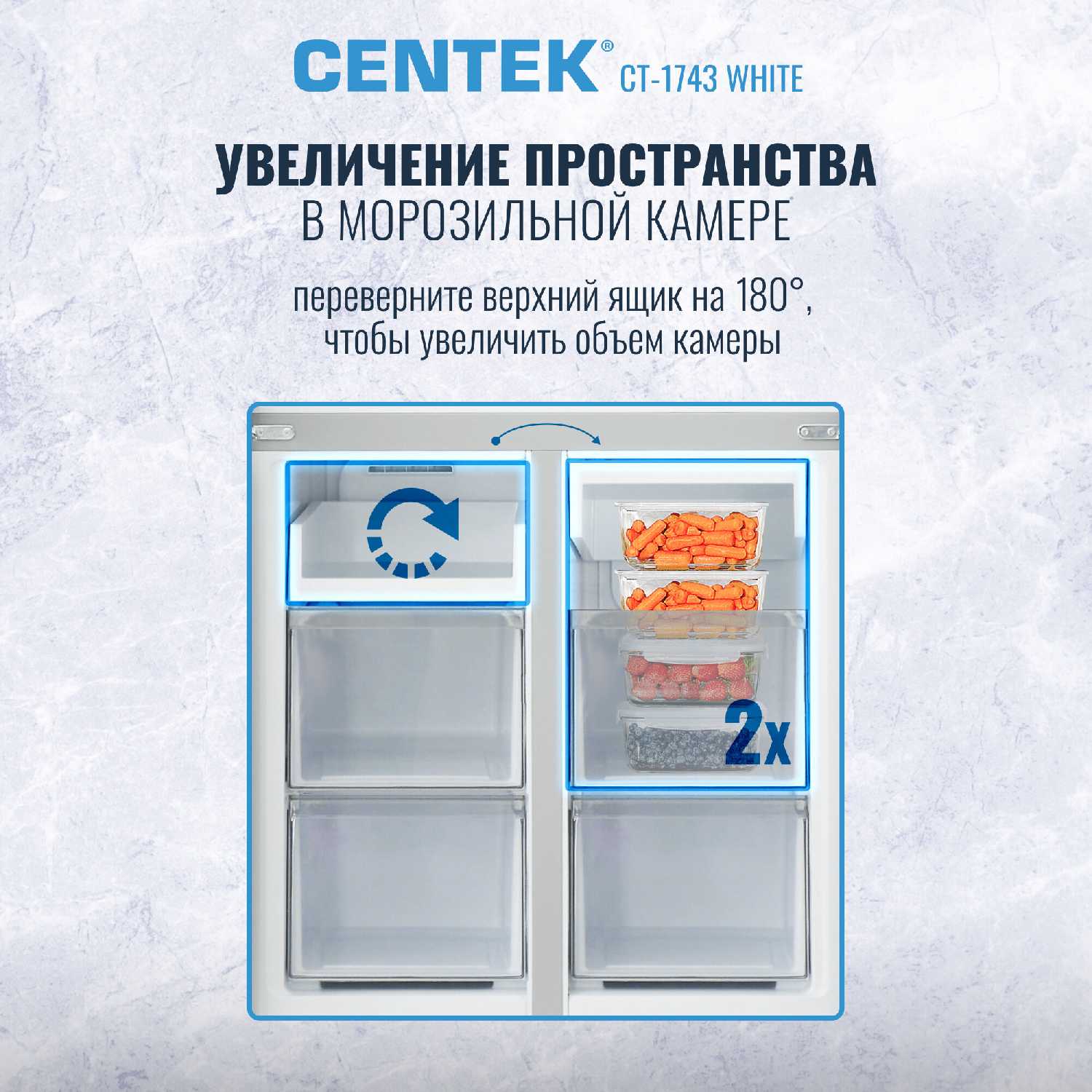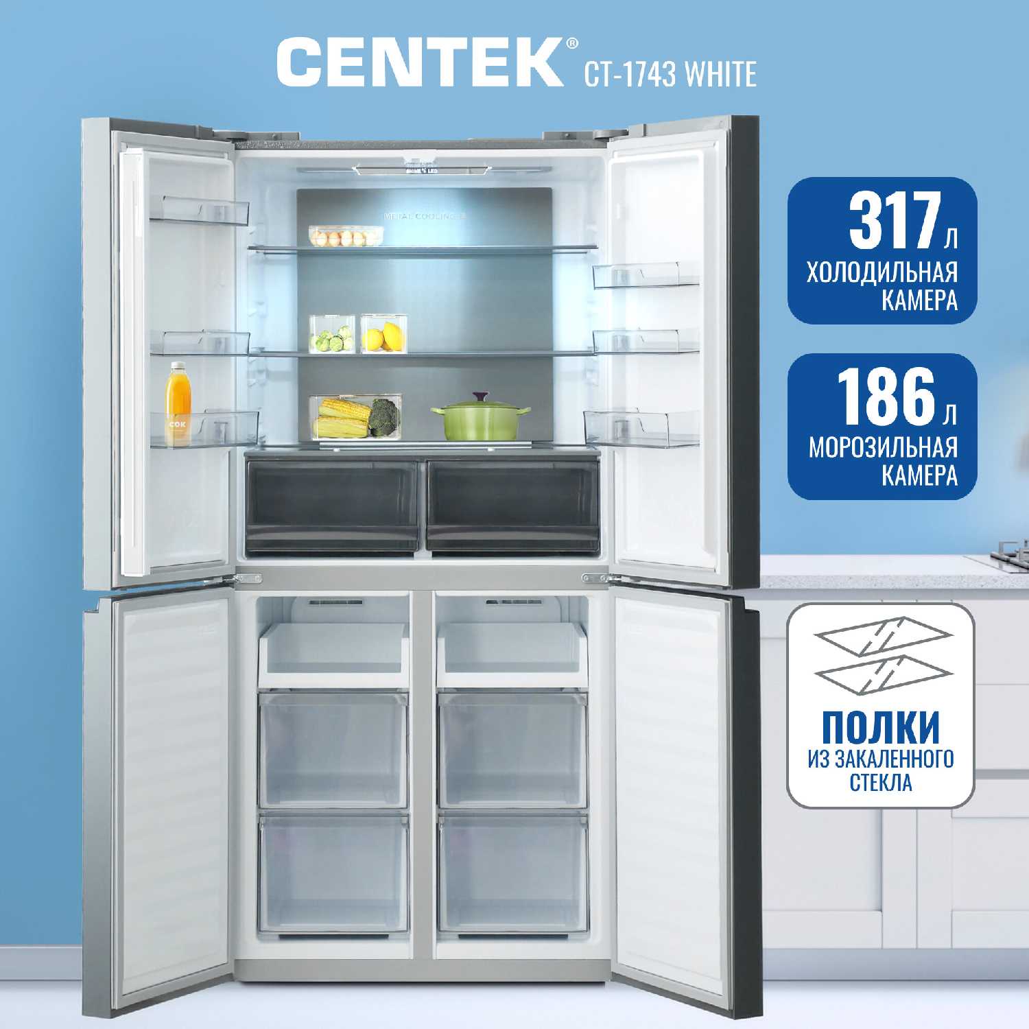 Холодильник CENTEK CT-1743 - бесподобен. Выглядит шикарно, вместимость огромная. Работает бесшумно, ящики в морозильной камере - отдельный респект. Морозит быстро, холодит стабильно. Большую благодарность хочу выразить наиприятнейшим людям из сервисного центра Сентек в г. Краснодар, которые оперативно ответили на все мои вопросы по эксплуатации прибора.