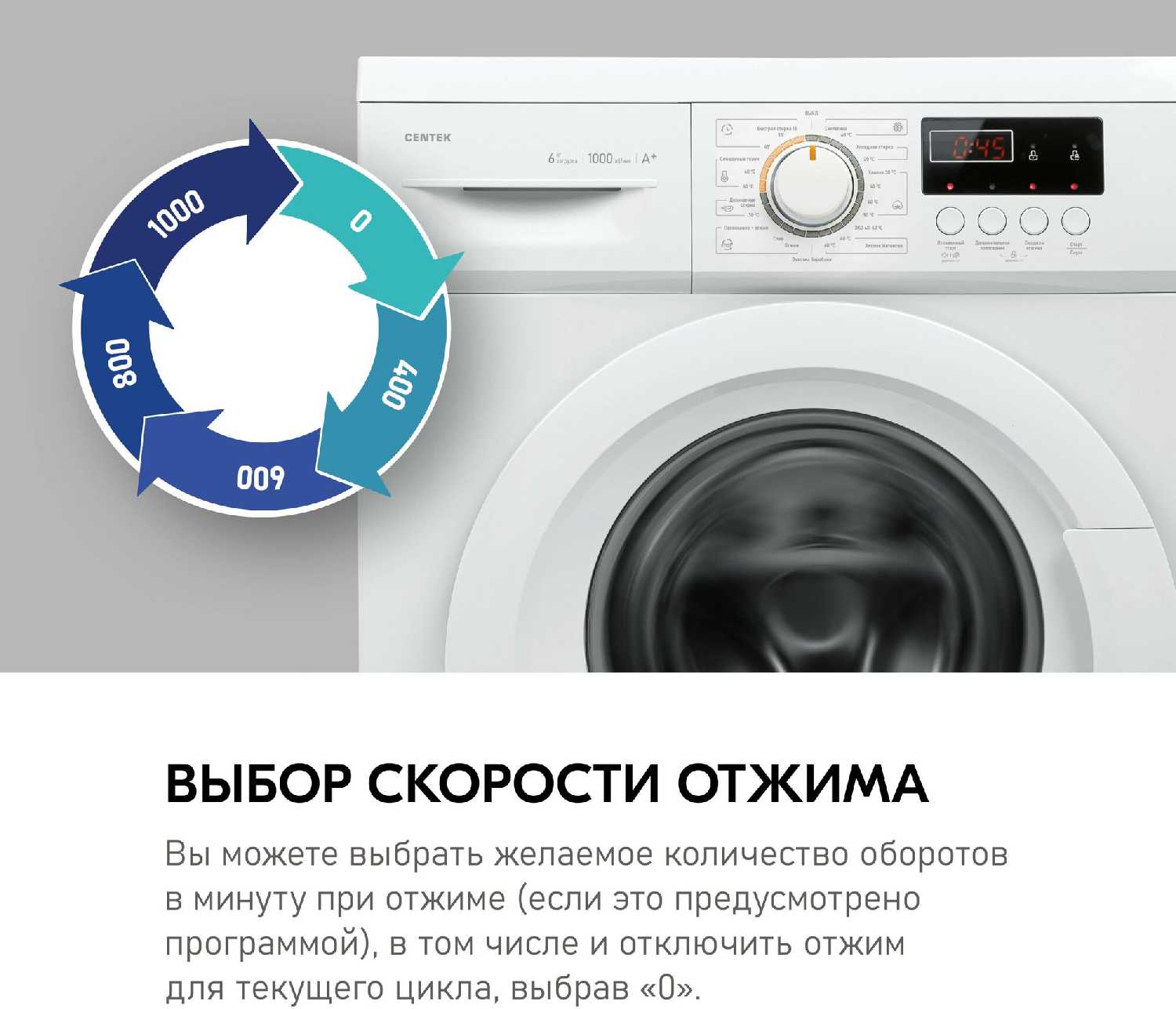 - максимальное значение скорости отжима: 900–1100 об/мин