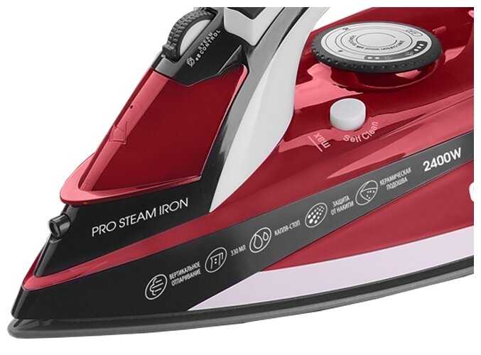 - + керамическая подошва, паровой удар, крепление провода - крутится в любую сторону))