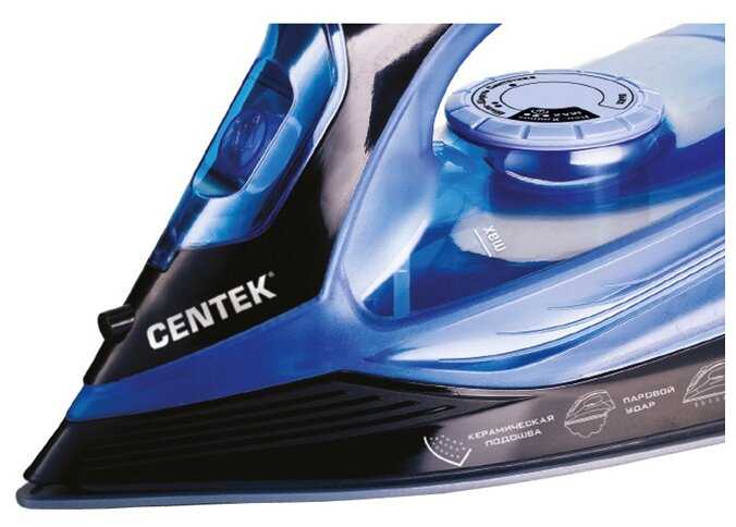 - + Утюг Centek CT-2351 Red - был доставлен в надежной и крепкой упаковке в целости и сохранности раньше заявленного срока. Порадовало! Мне понравилось, что у этого утюга приятный темно-красный цвет и современный стильный дизайн. Пластик, из которого изготовлен, конечно, не высший сорт, но с виду, вроде бы, крепкий и не хлипкий. Время покажет. Подошва изготовлена из керамики, окрашена аккуратно и красиво. Узкий носик. Предусмотрен желобок для пуговиц. Утюг относительно легкий, весит где-то около 1 кг. Хотя он довольно мощный. Нагревается быстро. Есть лампочка-индикатор включения и нагрева. У резервуара для воды приличный обьем 300 мл. Длина сетевого шнура примерно 1,5 м. В процессе эксплуатации он не перекручивается, что очень приятно. Имеется система самоочистки утюга. А вот автоматическое отключение не предусмотрено. Паровой удар работает хорошо. Есть также исправно работающий функционал: вертикальное отпаривание, регулировка подачи пара, противокапельная система, распыление воды. Достаточное количество режимов работы для различных материалов вещей. При глажке скользит легко, если правильно подобрана температура нагрева. К подошве утюга ничего не прилипает. Подставка удобная, утюг не падает. Есть мерный пластиковый стаканчик для заливки воды. В целом, имеется все, что необходимо в современных бюджетных моделях домашних (не профессиональных) утюгов.