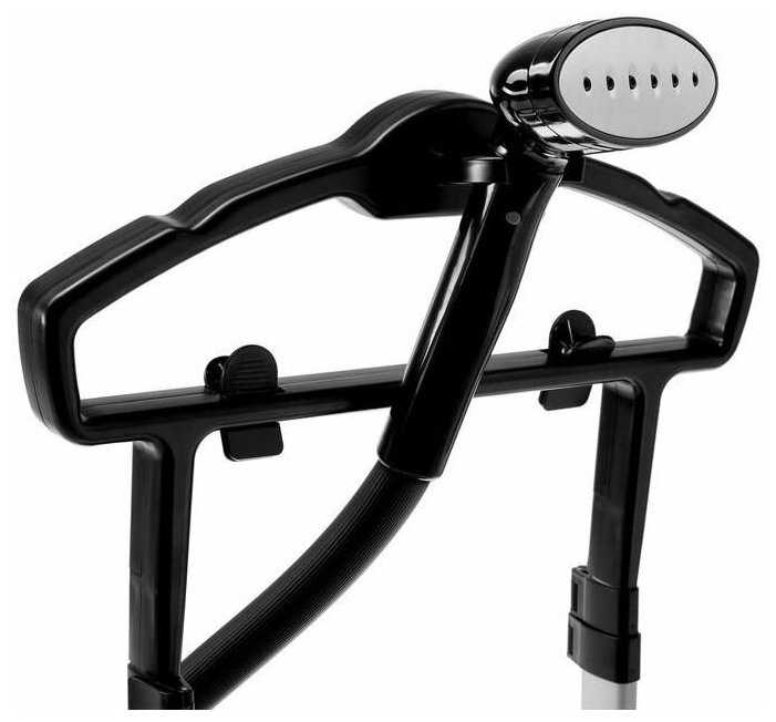 Чтоб на плечики повесить футболку, нужно снять шланг отпаривателя и куда-то его положить или бросить на пол,это жудь как не удобно. Крепления плечиков болтаются, плечики не закрепляются ни как, снимаются с крепления вместе с одеждой.