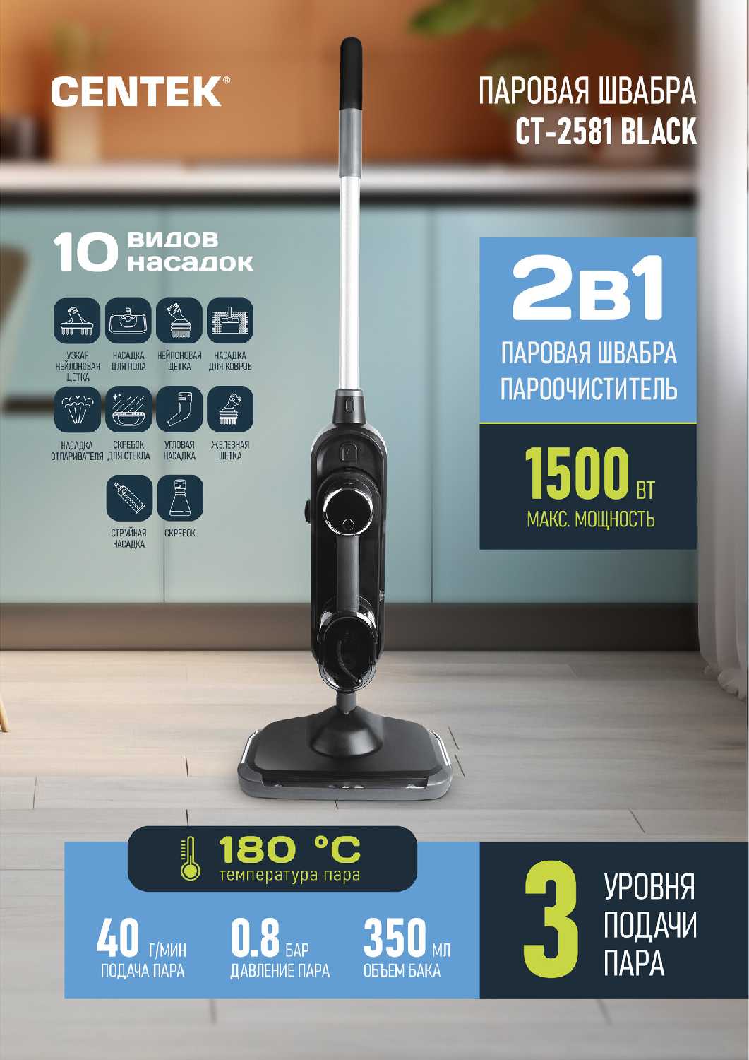 11 отзывов пользователей o CENTEK Паровая швабра (CT-2581)