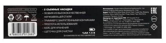 | Дополнительная информация : | Защитная крышка, Насадка-триммер, Насадка-триммер для носа, Щеточка |