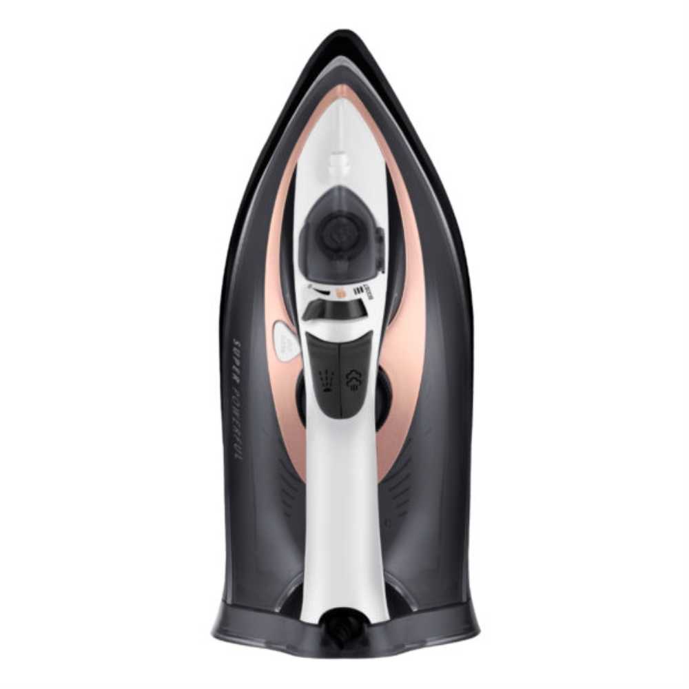 - + быстро ногревается.мощный пар.на колесе регулировки температуры написано на русском языке(сразу понятно какая и для какой ткани).в вертикальном положении с водой,она не вытекает.подошва хорошо скользит,в мере тяжелый.