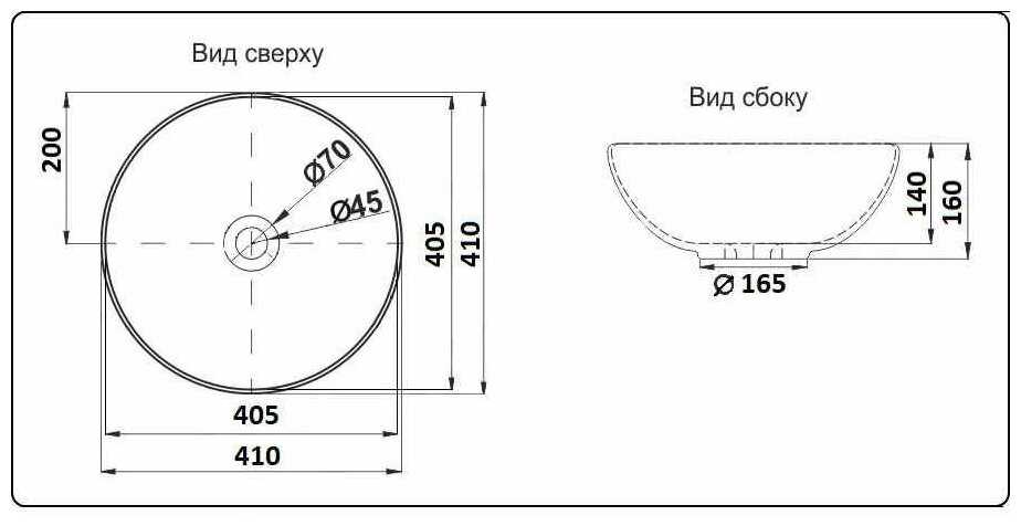 | Диаметр сливного отверстия : | 45 мм |