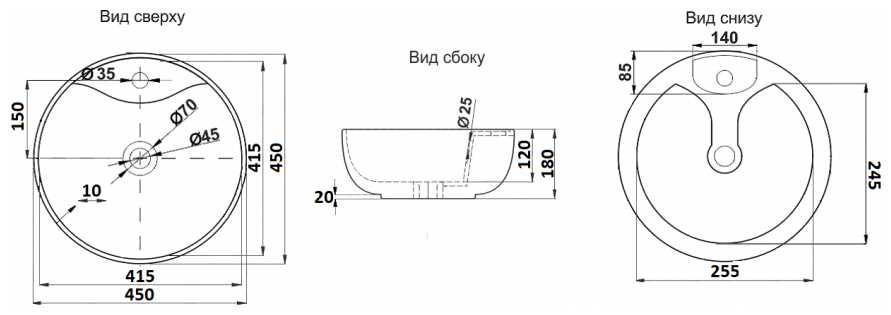 | Диаметр сливного отверстия : | 45 мм |