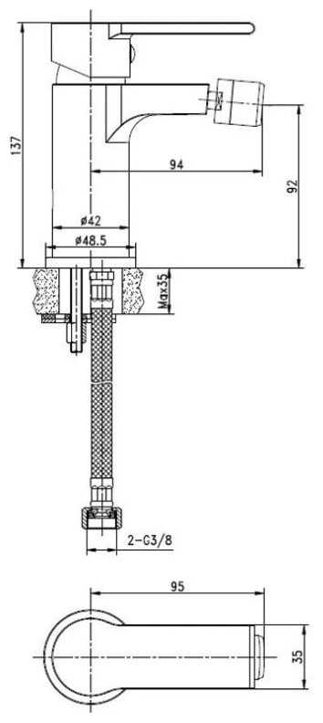 - - Подключение 1/2, не совсем понятно почему для смесителя биде такой разьем