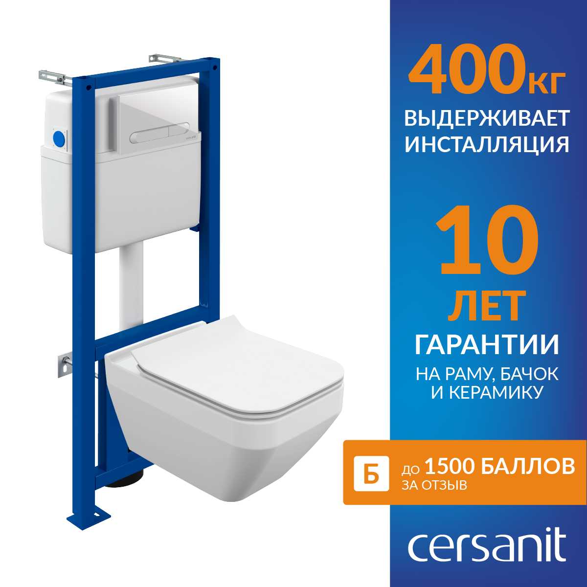 Отзывы о Комплект унитаз подвесной с инсталляцией, кнопкой и сиденьем Cersanit CREA SQUARE (68300)