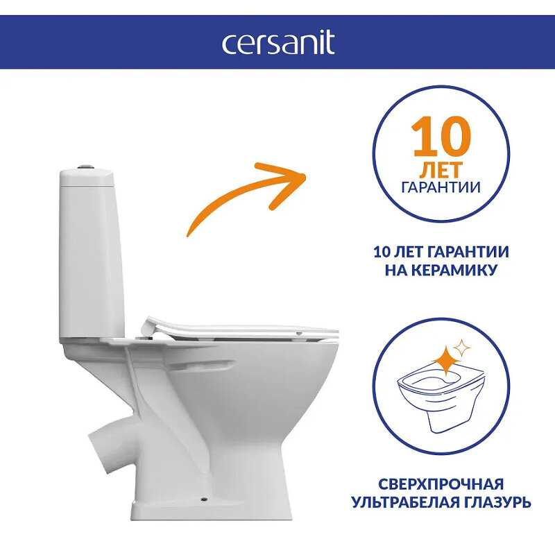| Дополнительная информация : | унитаз керамический косой выпуск, бачок смывной керамический с нижним подводом воды, двухуровневый спускной механизм, сиденье для унитаза из дюропласта с функцией плавного закрывания, монтажный комплект, инструкция/гарантийный талон |