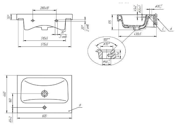 | Отверстие под перелив : | есть |